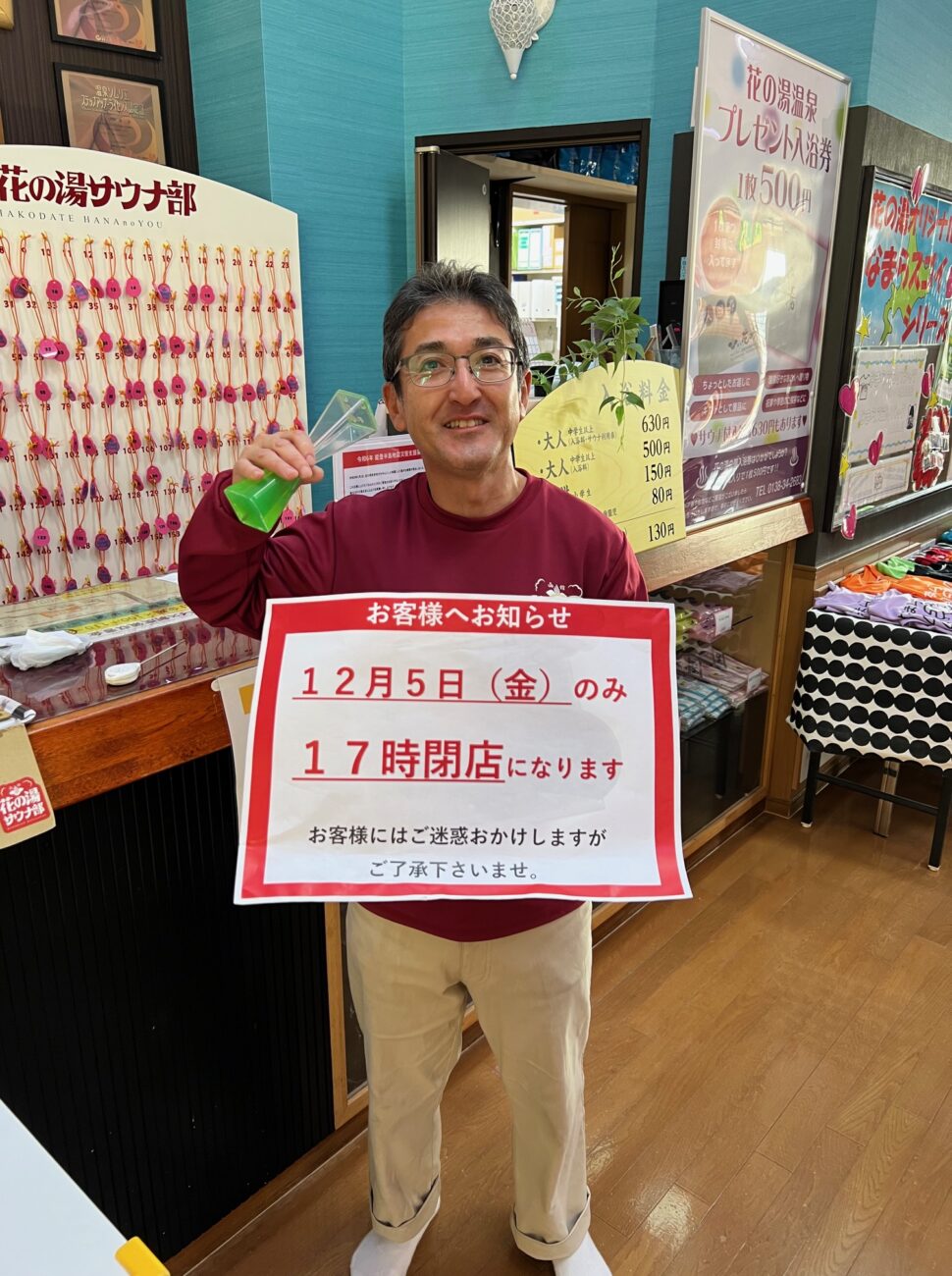 12月5日(金曜日)は社員研修の為、17時に閉店致します。